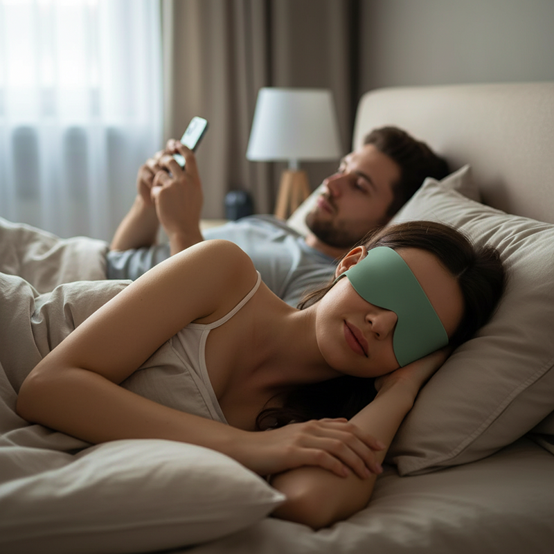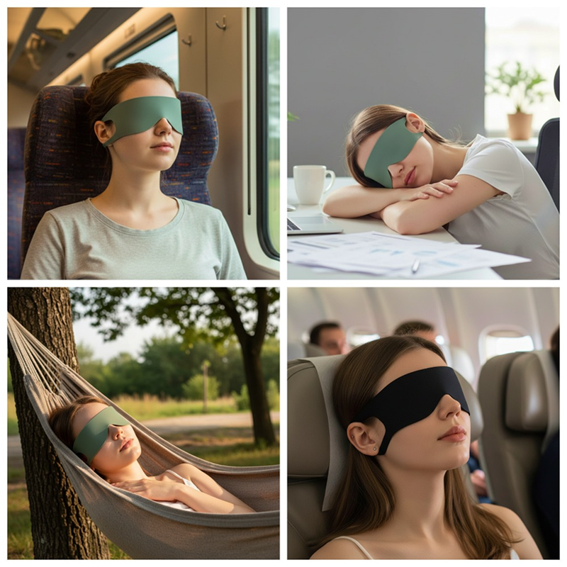 Lleva la máscara en cualquier bolso o bolsillo para usarla al instante. Duerme plácidamente en aviones, trenes o habitaciones de hotel ruidosas.