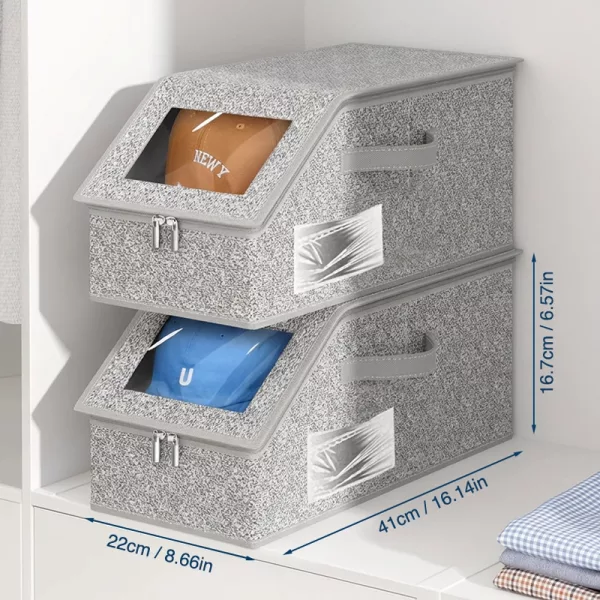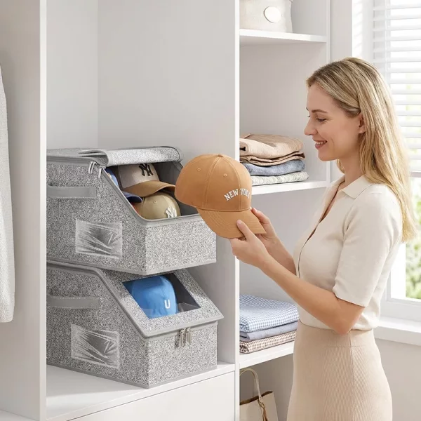 La estructura apilable te permite almacenar más en armarios pequeños. Usa cada estante eficientemente y mantiene los cuartos en calma.