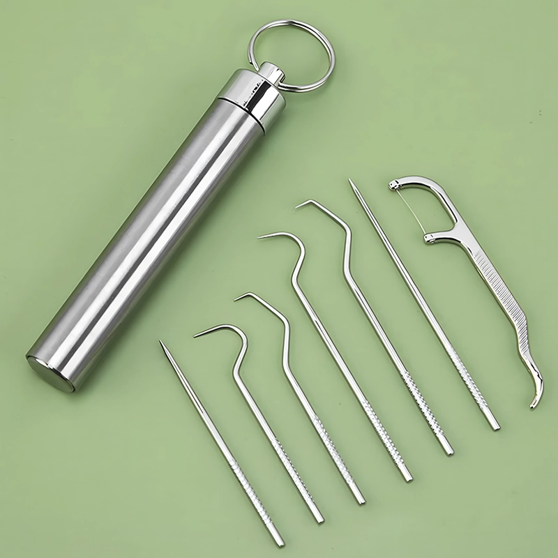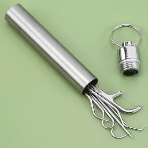 Siempre odié llevar hilo dental, así que probé este palillo de acero. Es fuerte, fácil de llevar y deja mi boca limpia cada vez.