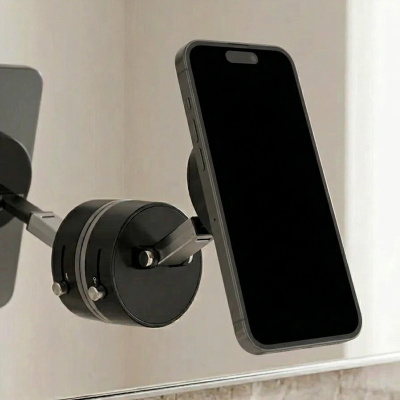 Compré este soporte para mi escritorio de trabajo. Ha sido muy útil para videollamadas sin necesidad de apoyar mi teléfono contra cualquier cosa. ¡Los imanes son realmente fuertes!