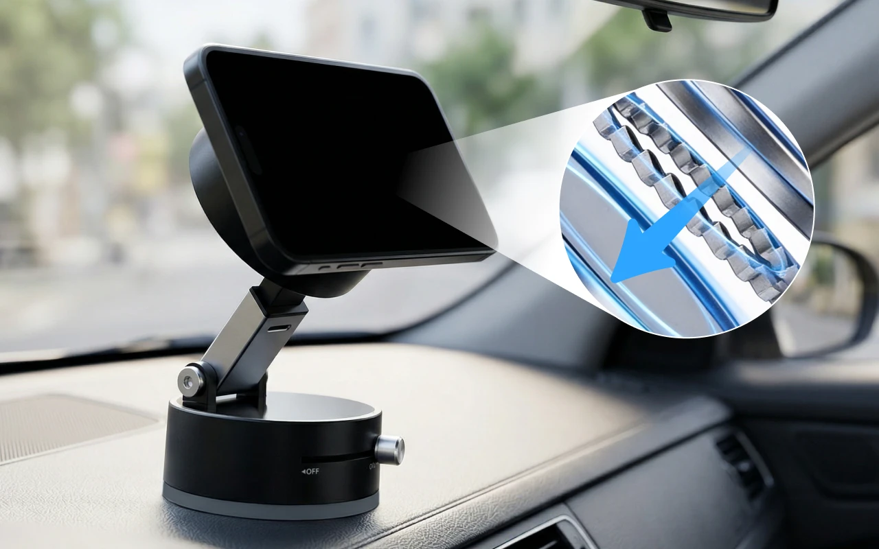 Potentes imanes mantienen tu teléfono firmemente en su lugar, siempre. Sin vibraciones ni deslizamientos, incluso cuando las superficies están irregulares.