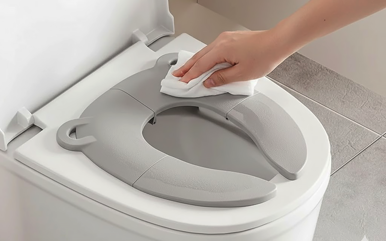La parte antideslizante me da tranquilidad cuando ayudo a mi hijo en los baños del parque. Se queda en su lugar y se siente grande usando el inodoro.