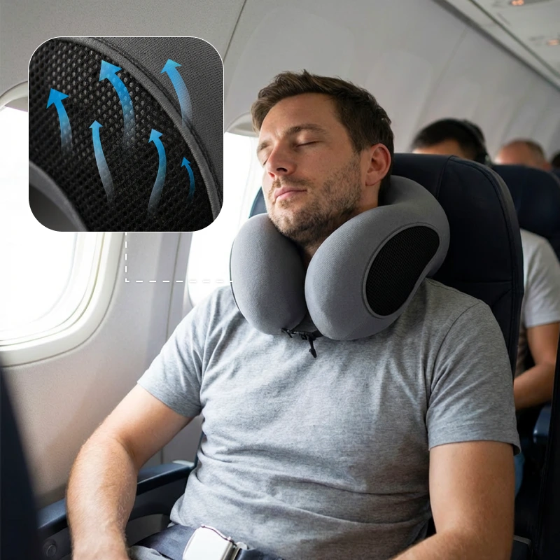 Me encanta cómo esta almohada rodea suavemente mi cuello. Nunca más músculos rígidos tras dormir sentado. La transpirabilidad también mantiene todo fresco.