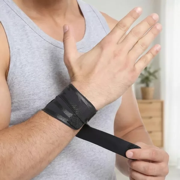 Empecé a usar esta férula en el gimnasio para flexiones y planchas. Mantiene mi muñeca alineada, se siente ligera y no se desliza ni siquiera cuando sudo.