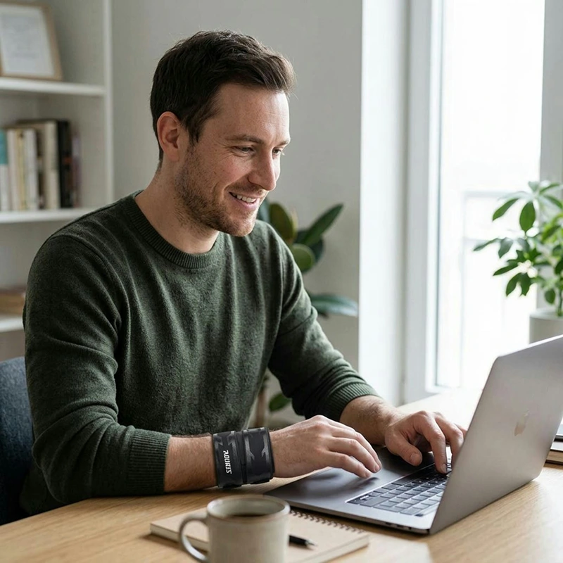 Ajusta fácilmente la tensión para deportes, trabajo o descanso. Una sola talla se adapta con seguridad a cualquier muñeca sin deslizarse ni formar pliegues.