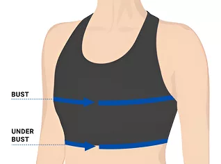 - 3. Para encontrar la medida bajo el busto, rodea con la cinta métrica tu caja torácica, justo debajo del busto de manera uniforme y directa.