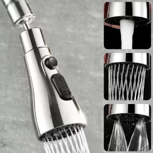 La extensión encaja perfectamente en nuestro grifo viejo. Las diferentes configuraciones de rociado me permiten enjuagar sartenes difíciles o cambiar a frutas delicadas en segundos.