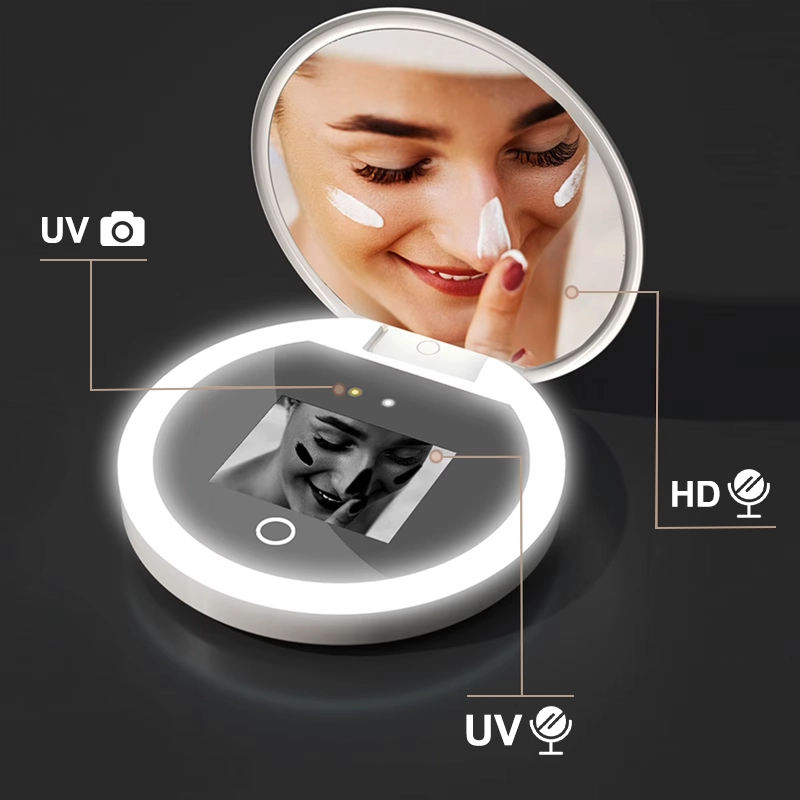 Comprueba fácilmente la seguridad de tu piel cada día al aire libre. Usa luces brillantes para el mejor maquillaje o cobertura de protector solar en cualquier lugar. Evita zonas que puedan causar problemas reales en la piel rápidamente. Su diseño pequeño cabe fácilmente en cualquier bolso o bolsillo.