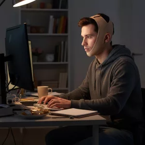 Empecé a usar la banda reductora todas las noches y mi mandíbula ya se ve más definida. Es cómoda y fácil de llevar mientras veo la tele.