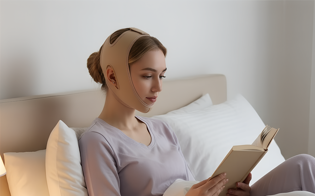 La banda para el mentón se siente suave y se sostiene bien sin deslizarse. Me la pongo media hora antes de dormir y realmente ayuda a tensar mi cara.
