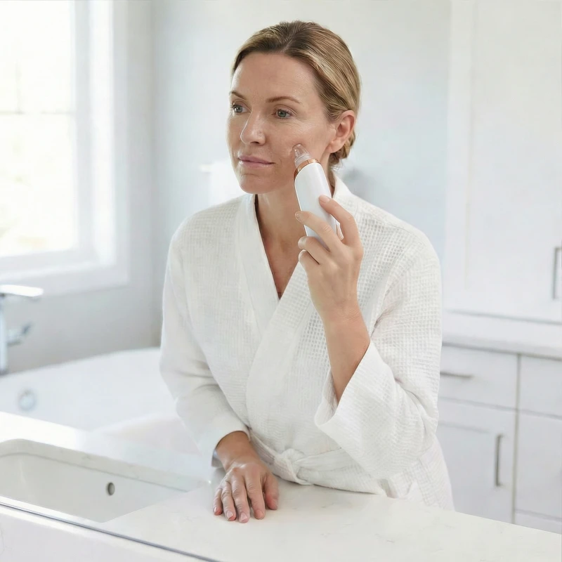 Este pequeño dispositivo de succión es muy fácil de usar. Me gusta elegir la intensidad que necesito según la zona de mi rostro que limpio. Sin dolor, solo piel más limpia.