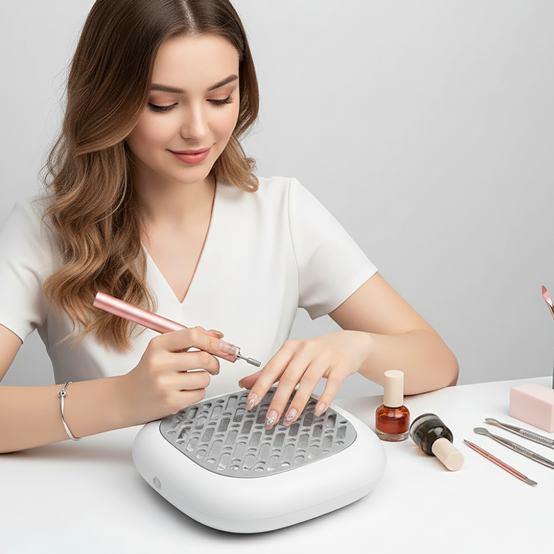 Me encanta usar este colector para manicuras en casa. La succión recoge cada partícula de polvo, incluso la más pequeña. Mi habitación huele fresca después.