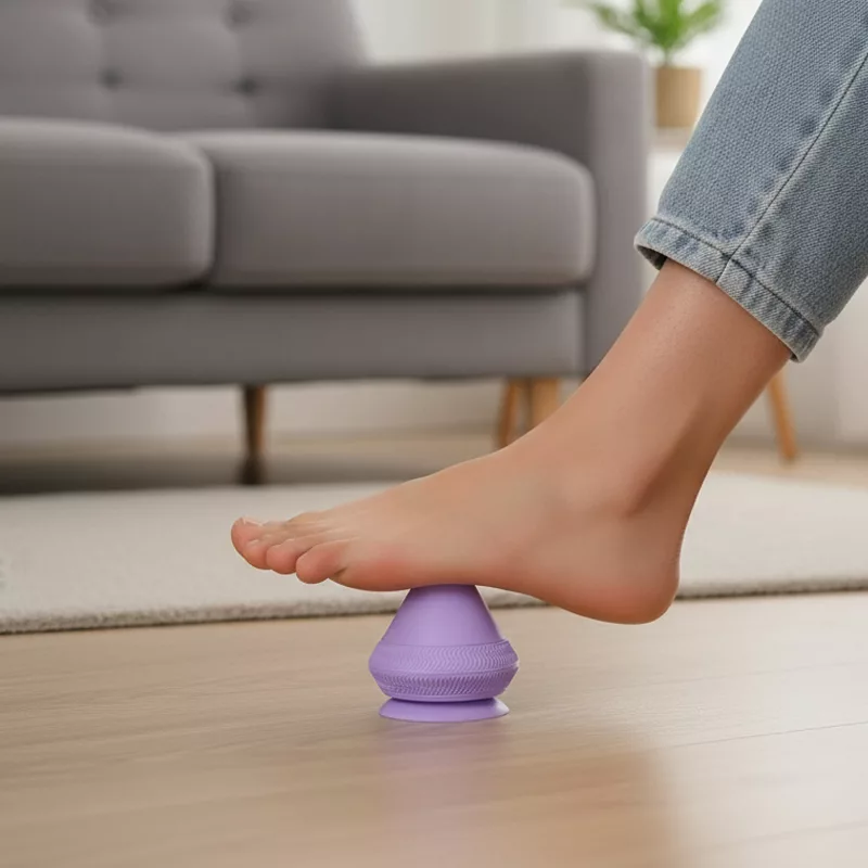 La ventosa asegura el dispositivo a superficies planas. Disfruta de un masaje revitalizante en los pies mientras estás de pie o sentado cómodamente.