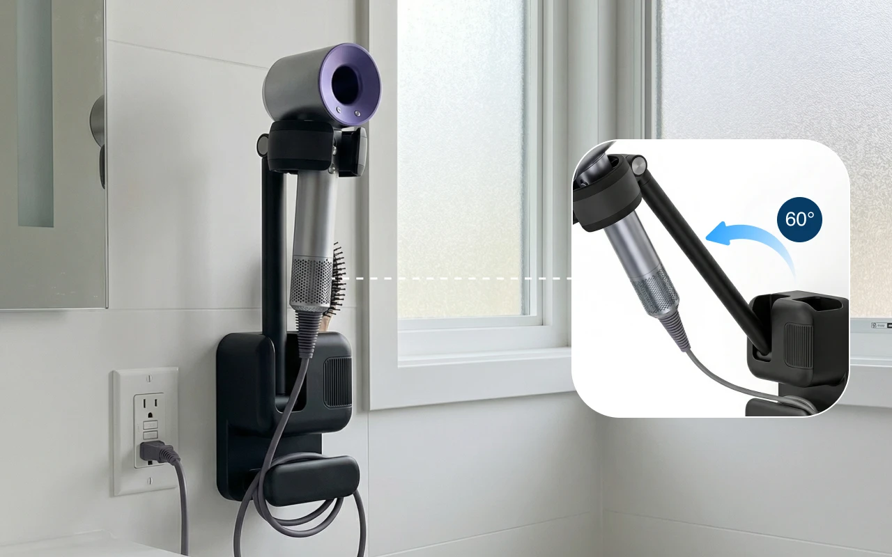 ¡Un amigo me recomendó esto y ahora entiendo por qué! Ya no hay más desorden y mi secador siempre está a mano. Mi baño se ve mucho más ordenado.