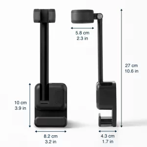 La barra de aluminio soporta hasta 500g con un agarre estable. Tus dispositivos se mantienen seguros de caídas y rayones en todo momento.