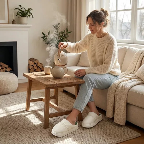 Estas pantuflas peludas son tan acogedoras y mantienen mis pies súper calientes en las mañanas frías. No hay presión ni apretón, solo comodidad suave en cada paso.