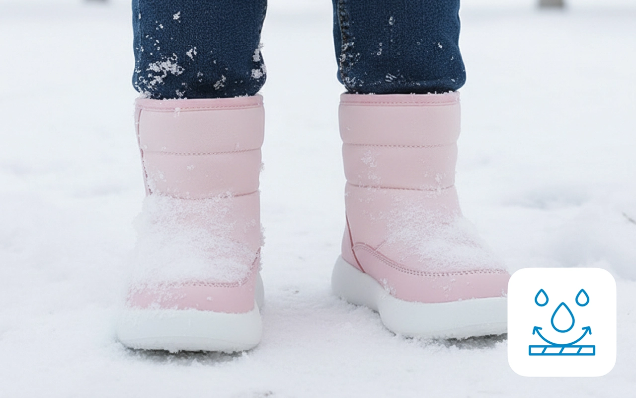 El agua permanece fuera, manteniendo los calcetines secos toda la tarde. Los niños saltan en charcos o nieve sin que los pies mojados arruinen su diversión.