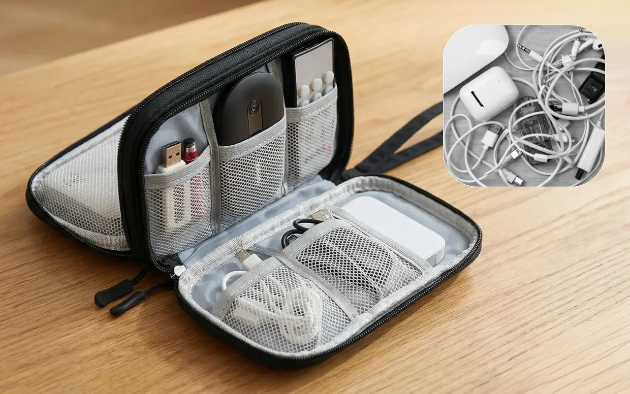 Ahora es mucho más fácil empacar mis cables y cargadores. El estuche se limpia rápido y no me estreso por los derrames.