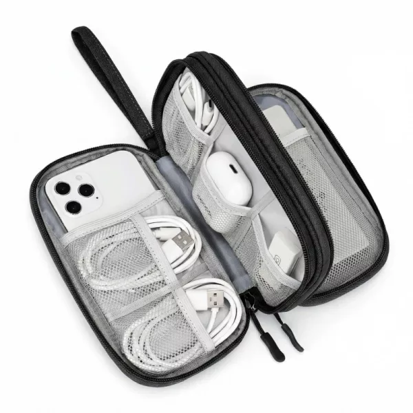 Compré esto para ir al trabajo. Mantiene los cables del teléfono separados del cargador de mi laptop y mi bolso en la mañana es mucho menos desordenado.