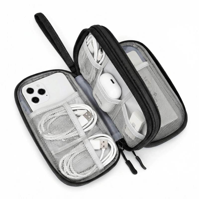 Los cables enredados te retrasan y te hacen perder tiempo. El estuche Ortorex mantiene tus dispositivos ordenados y fáciles de encontrar. Llévalo de viaje, a la escuela o al trabajo. Disfruta la tranquilidad de saber que tus esenciales siempre están protegidos.