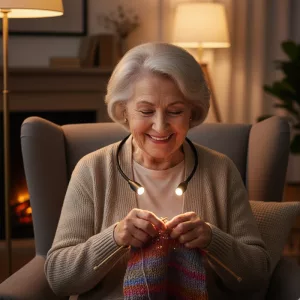 La uso para hacer crochet por las tardes y mi cuello nunca se cansa. La luz suave resalta todos los colores.