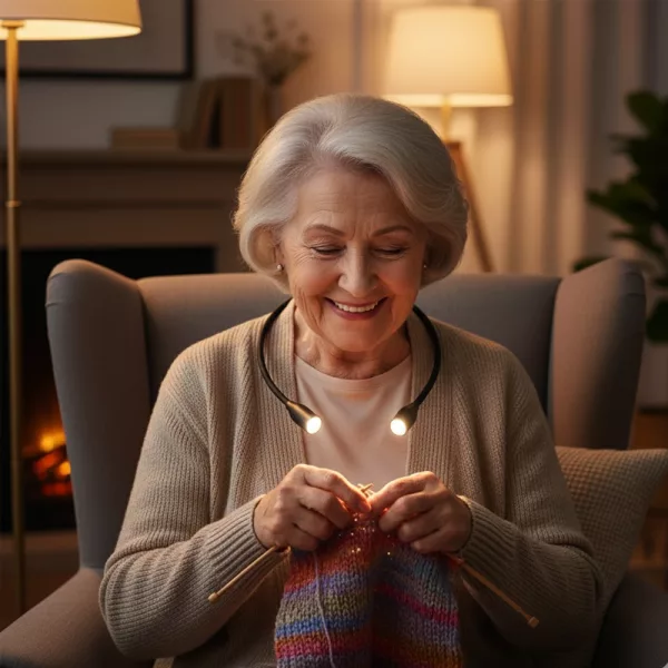 Disfruta de libros o manualidades nocturnas con la luz de cuello Ortorex. Dobla fácilmente los brazos para conseguir la iluminación perfecta cada vez que leas. Elige entre tres colores suaves para adaptarlos a tus ojos y estado de ánimo. Úsala durante horas sin sentir presión ni incomodidad.