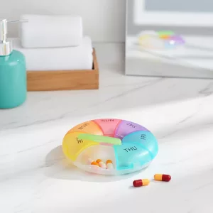 Mantén tu medicación ordenada y lista para usar con el pastillero Ortorex. Es compacto pero lo suficientemente grande como para contener el suministro de pastillas de una semana. Las tapas seguras evitan derrames, incluso cuando estás en movimiento.