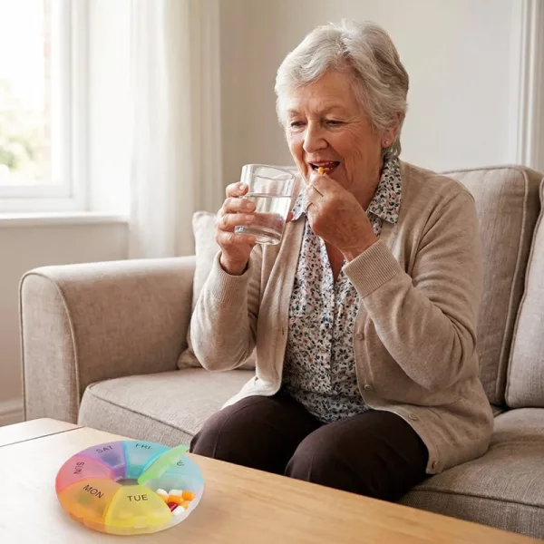 Mi abuela lo encontró fácil de usar. Las etiquetas de cada día ayudan mucho y ella lo mantiene junto a su cama. Ya no se le olvida tomar sus pastillas.