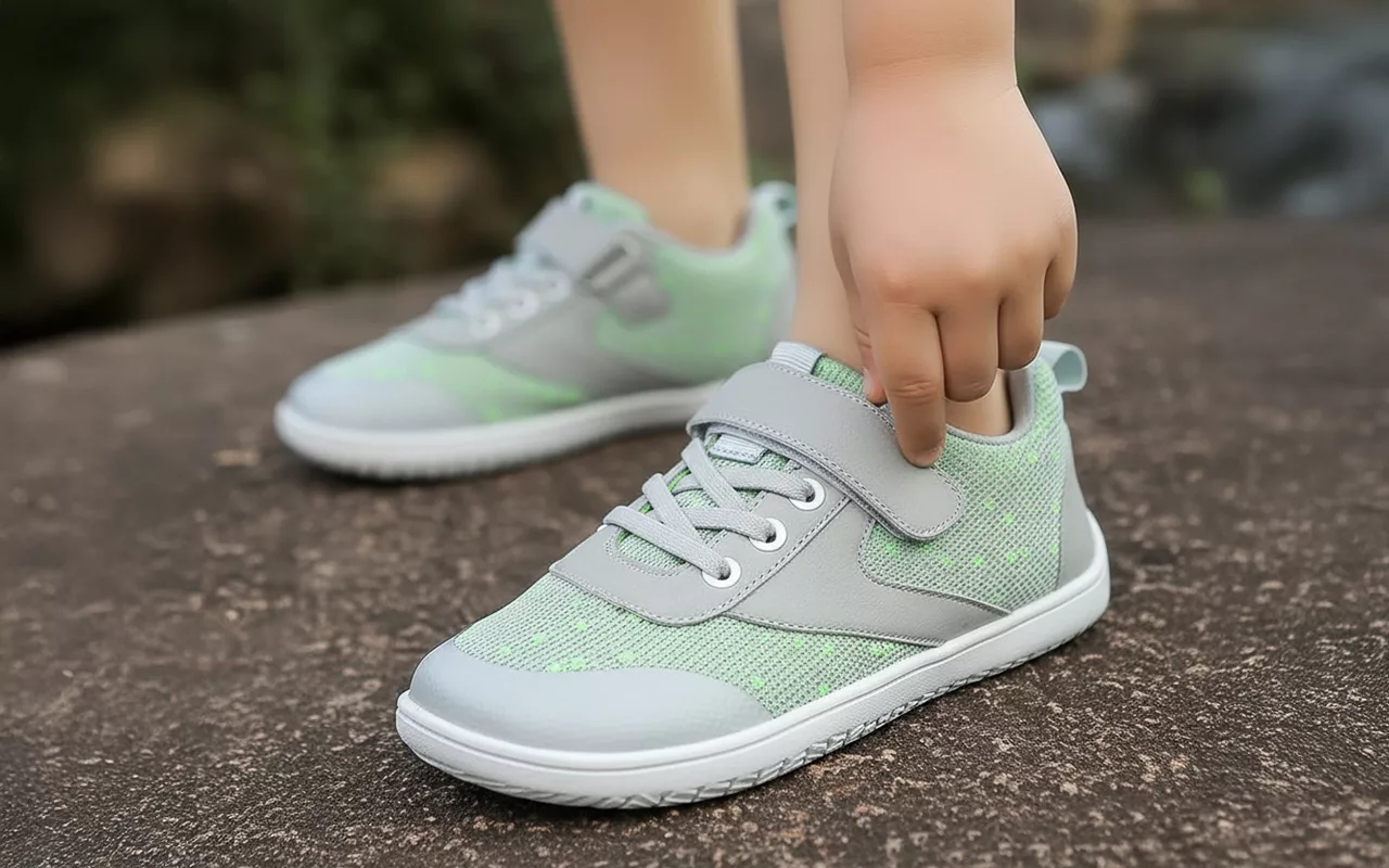 Un simple cierre de velcro permite que los niños se pongan los zapatos sin ayuda.