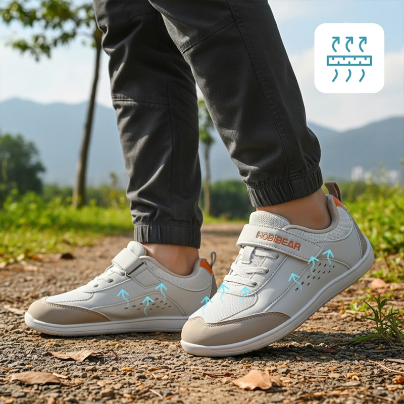 Los pies de los niños permanecen relajados porque los dedos nunca se sienten apretados. La expansión natural mejora el equilibrio y la comodidad en cualquier superficie.