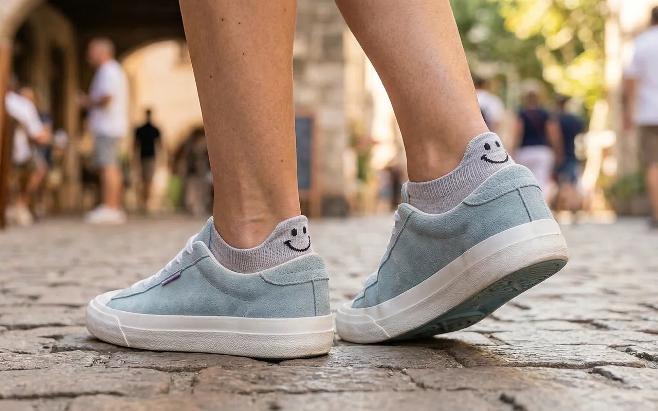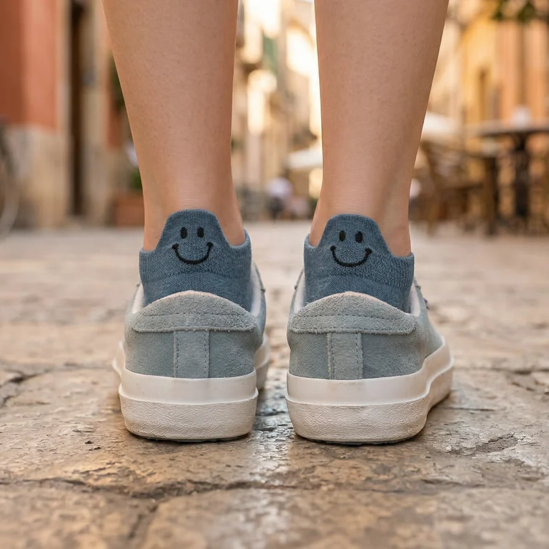Estos calcetines con sonrisa hacen que mis mañanas sean más agradables. Se mantienen en su sitio al caminar, mantienen mis pies secos y, de algún modo, mis zapatos huelen mejor al final del día.