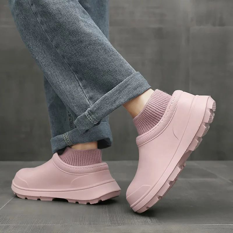 Estos zapatos sin cordones son perfectos para los días lluviosos. El diseño impermeable mantiene mis pies secos y el acolchado es justo lo que necesito para estar cómoda todo el día.