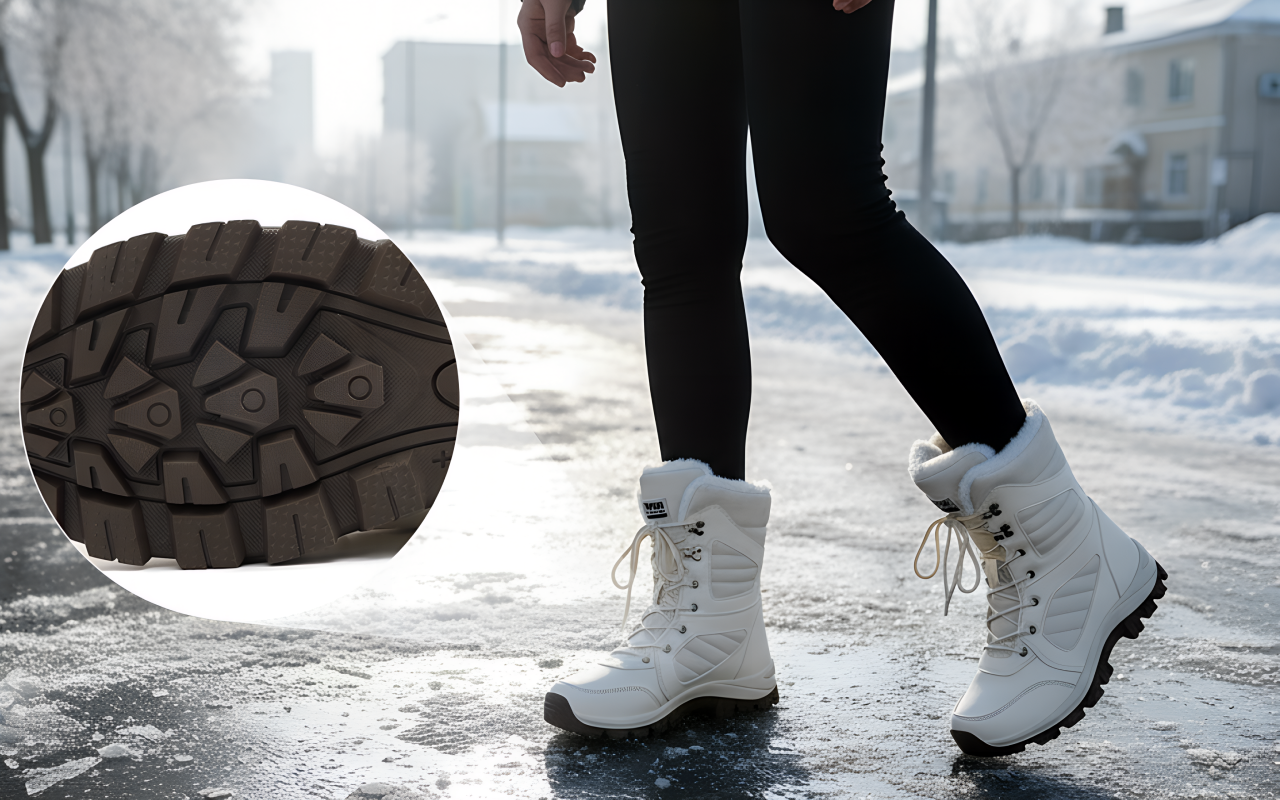 ¡Usar estas botas en la nieve es increíble! Mis pies se mantienen totalmente cálidos y secos, y puedo caminar donde quiera sin resbalarme ni una sola vez.