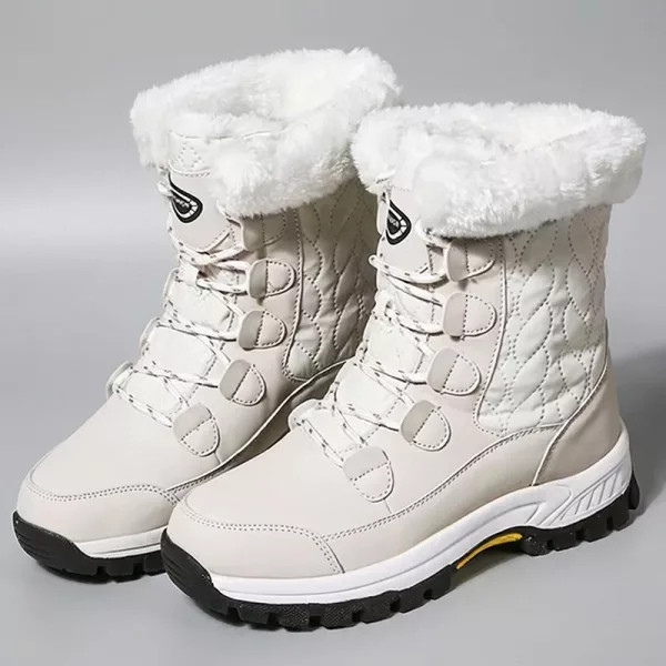 Me gusta lo abrigadas que están para largas caminatas de invierno con mi perro. Realmente son impermeables y los cordones las mantienen ajustadas.