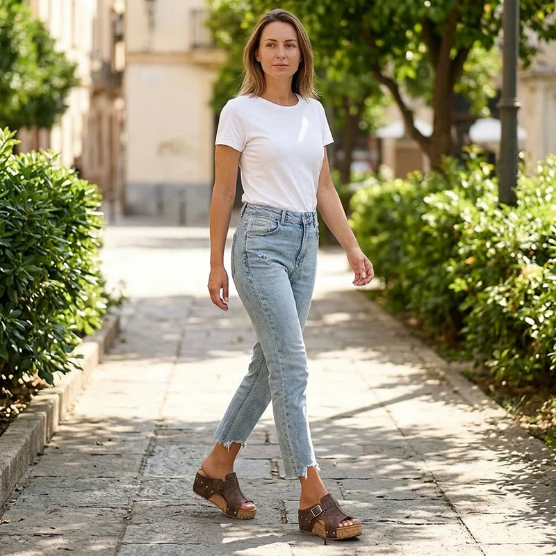 Tengo el pie ancho y normalmente odio los tacones, pero estas cuñas cambiaron eso. La base suave y el estilo fácil de meter el pie hacen que los atuendos de verano se sientan sin esfuerzo.