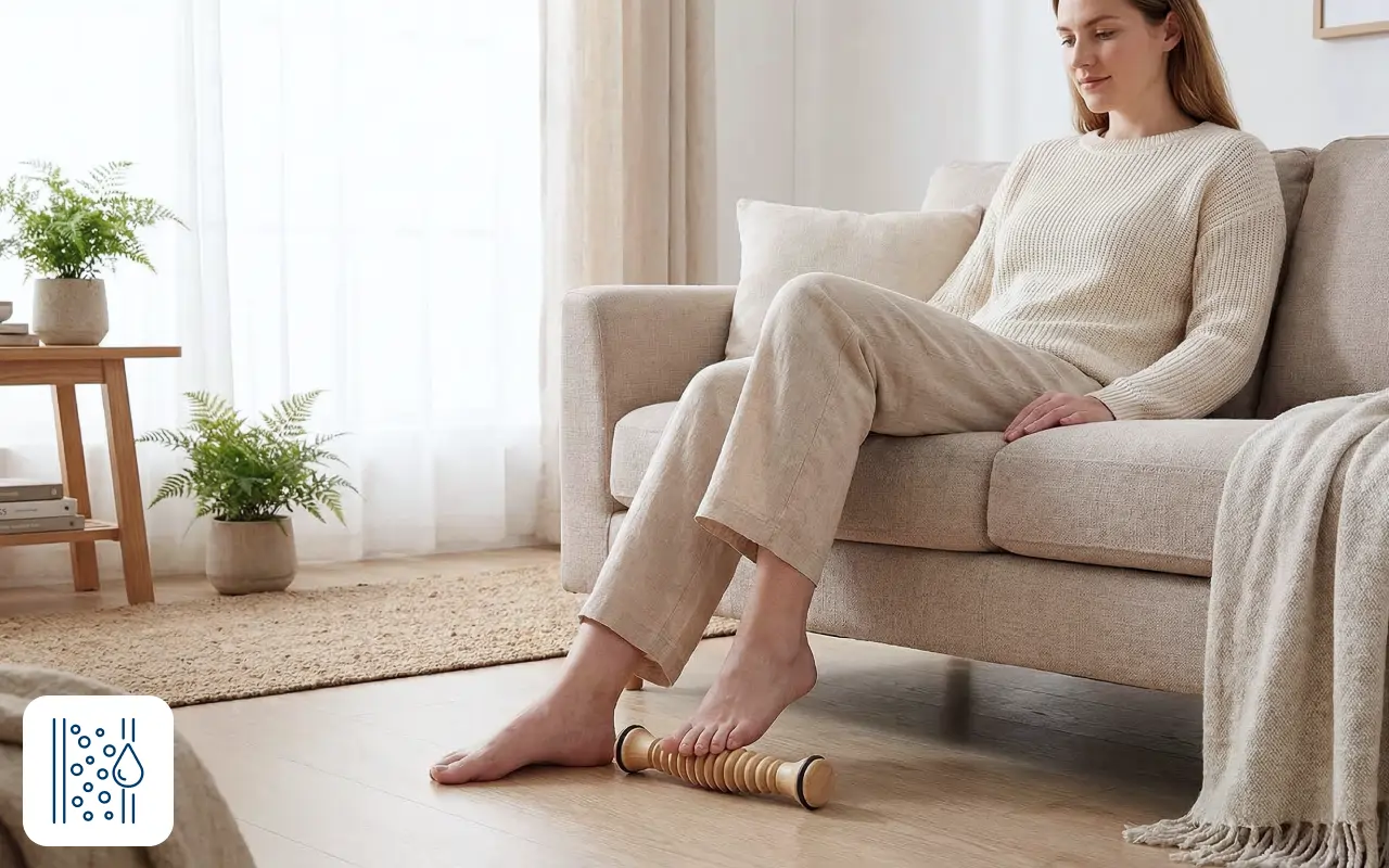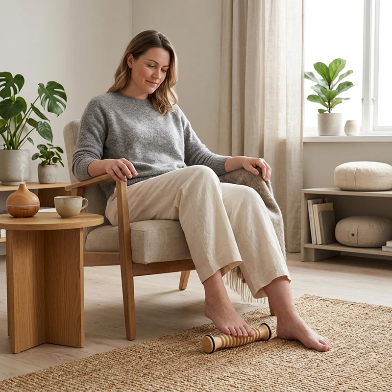 Uso el rodillo mientras leo en el sofá. Es curiosamente reconfortante, casi como un pequeño masaje, y mis pies quedan calientes y sueltos después.