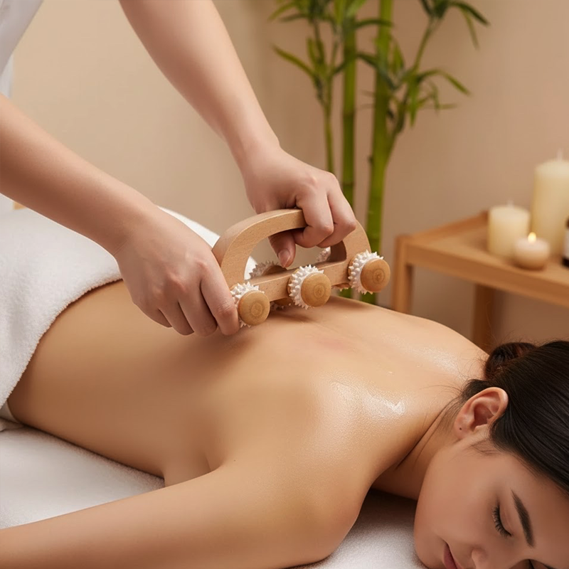 La estructura de madera ecológica hace que ningún plástico agresivo toque la piel. Las puntas de silicona suave hacen que cada sesión sea relajante y segura.