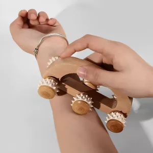 Me gusta que esté hecho de madera natural, no de plástico. Las puntas de silicona se sienten súper agradables en mi piel y nunca lastiman.