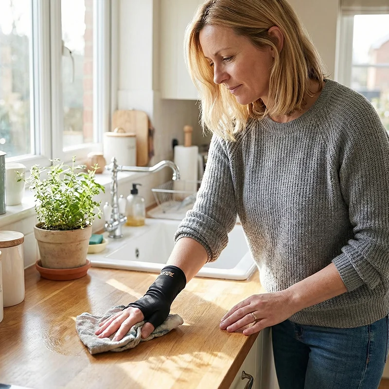 Como estilista, mis muñecas se cansan rápido. Esta funda envuelve con firmeza sin pellizcar, y las opciones de calor y frío calman mi mano entre clientes.